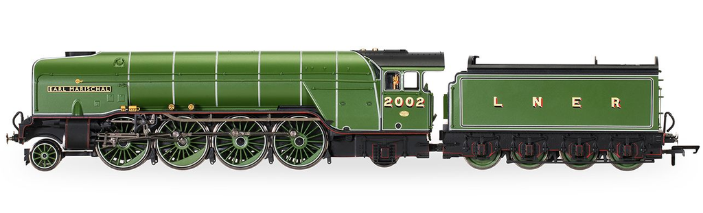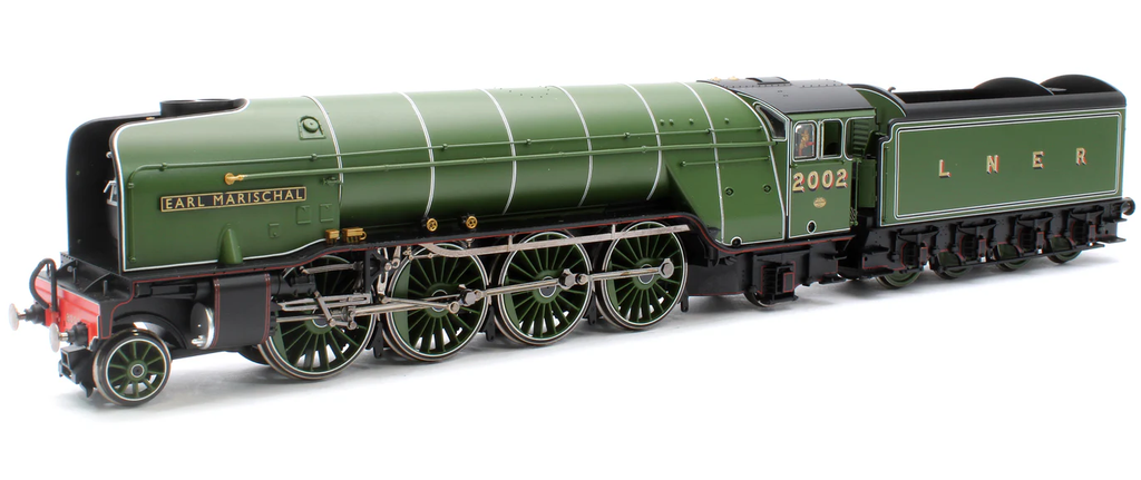 2002 'Earl Marischal' was the second P2 to be constructed and differed from its predecessor in a few key ways. No. 2002 was fitted with more conventional Walschaerts/Gresley valve gear which changed the locomotive's characteristics substantially necessitating the instillation of large smoke deflectors, whilst the original front of the casing had its leading edge cut back 12".